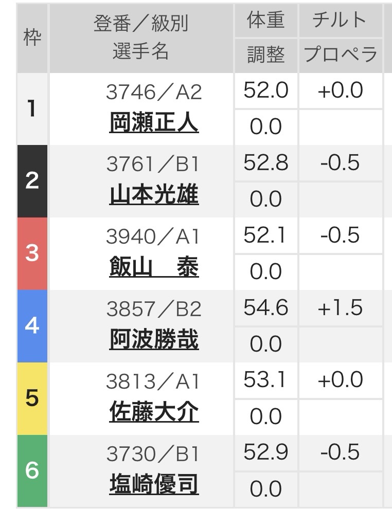 レース場ごとのチルト制限